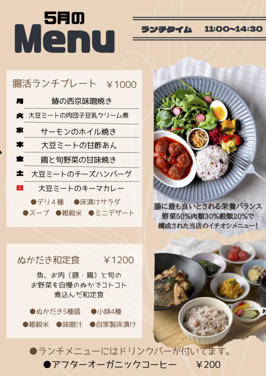 発酵食品や酵素がたっぷりの、腸活ランチをお楽しみください。